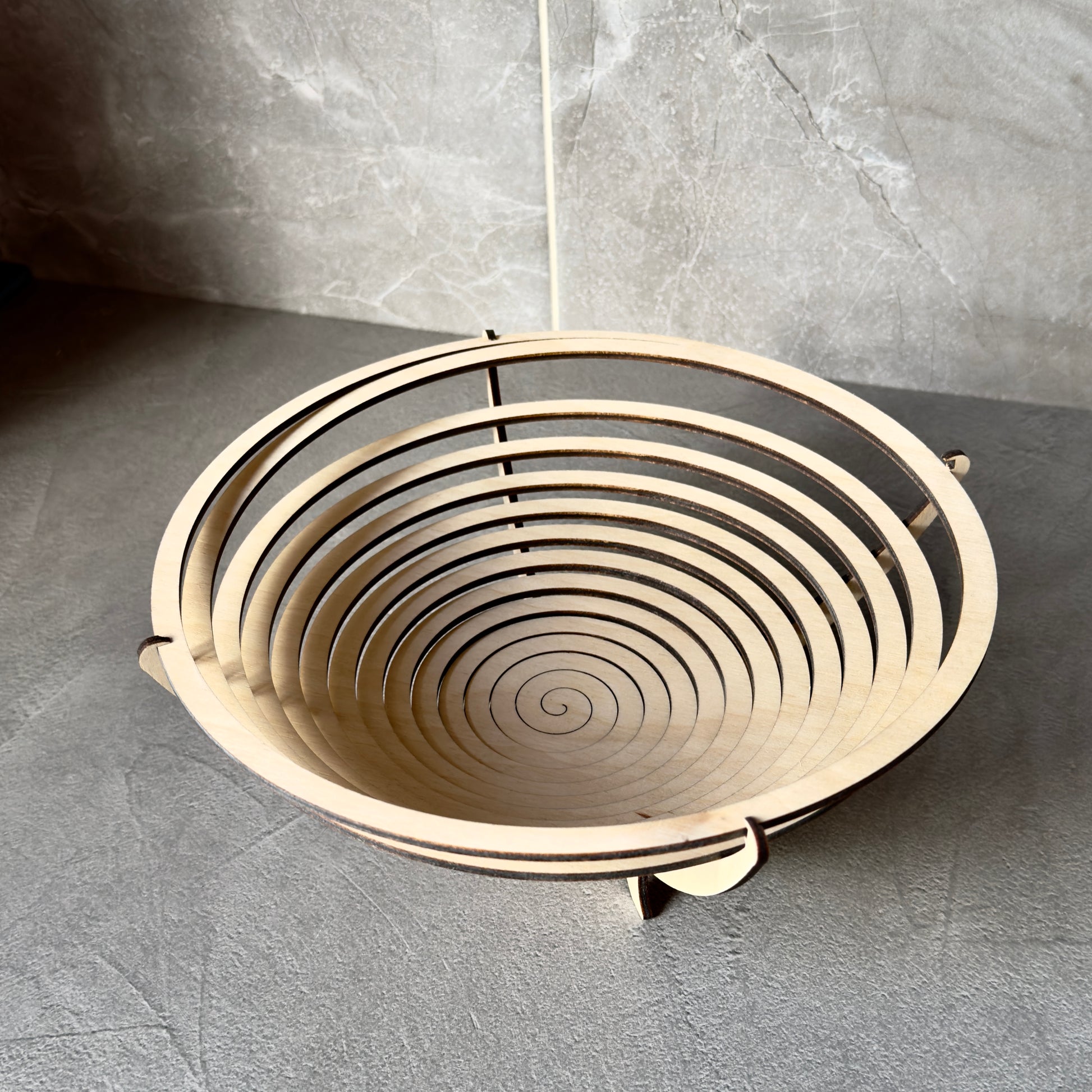Elegantní dřevěná mísa s jemným spirálovým vzorem, která zaujme na první pohled svou lehkostí a originálním zpracováním. Je vyrobena z kvalitní překližky s precizně vyřezanými liniemi, díky nimž působí vzdušně a moderně.