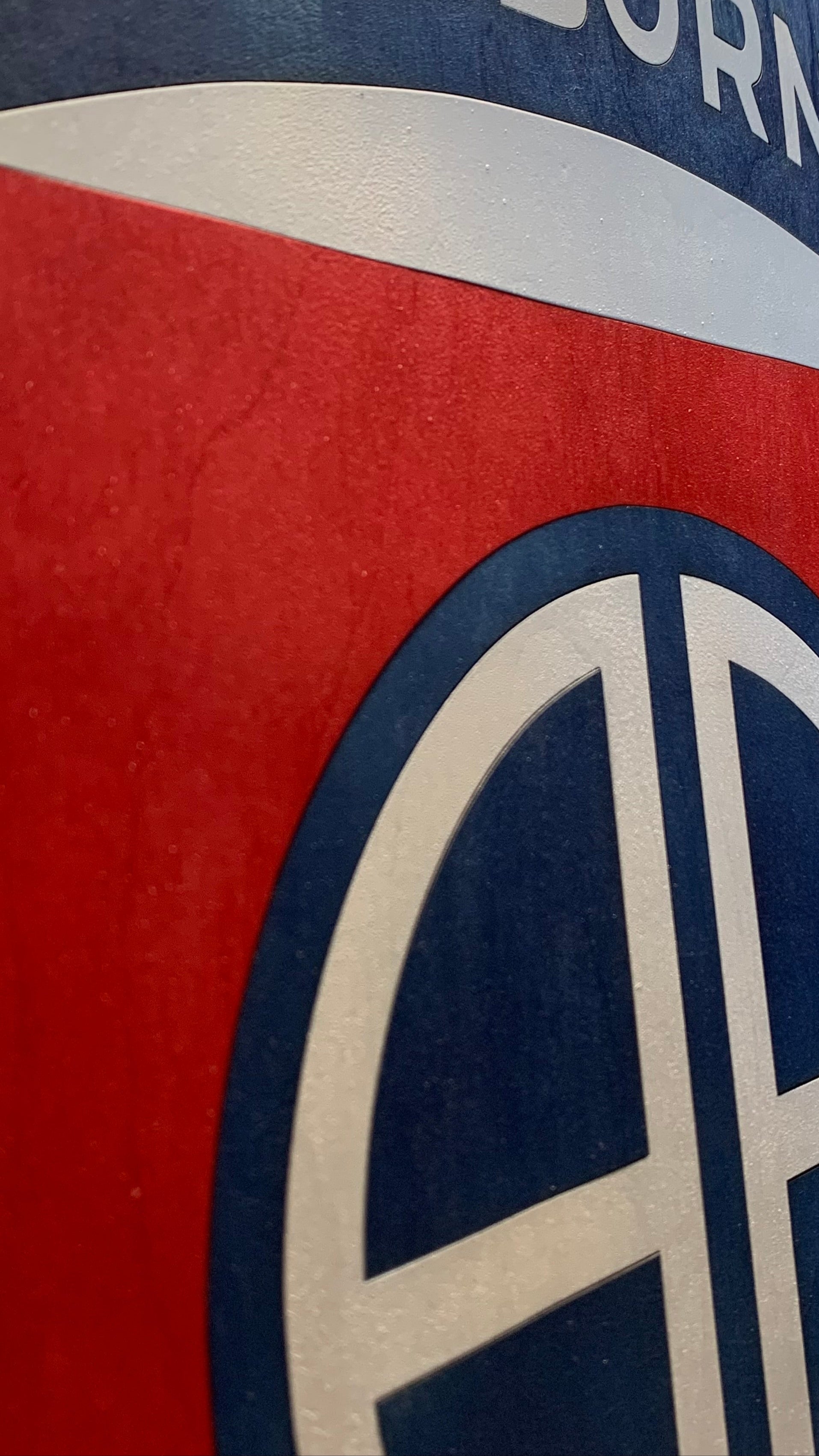 Vyrobeno ze 2 dřevěných desek vrstvených na sebe. Výrobek je zalakován a nabarven.