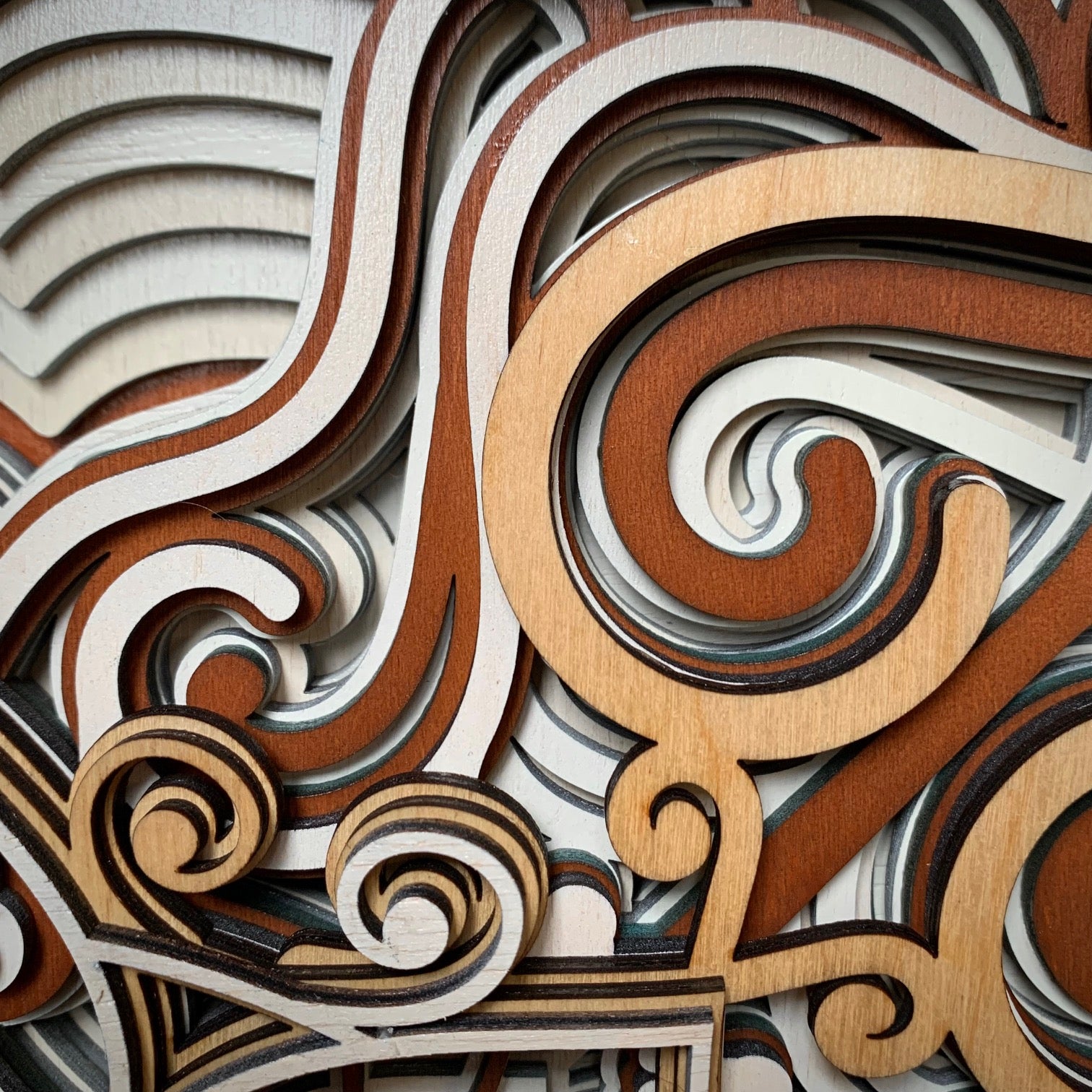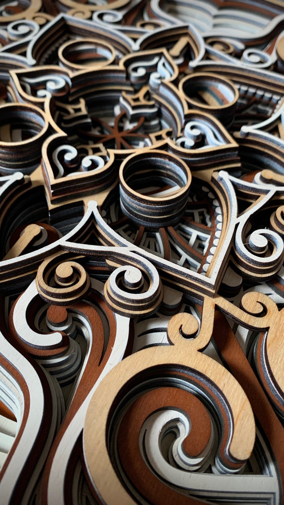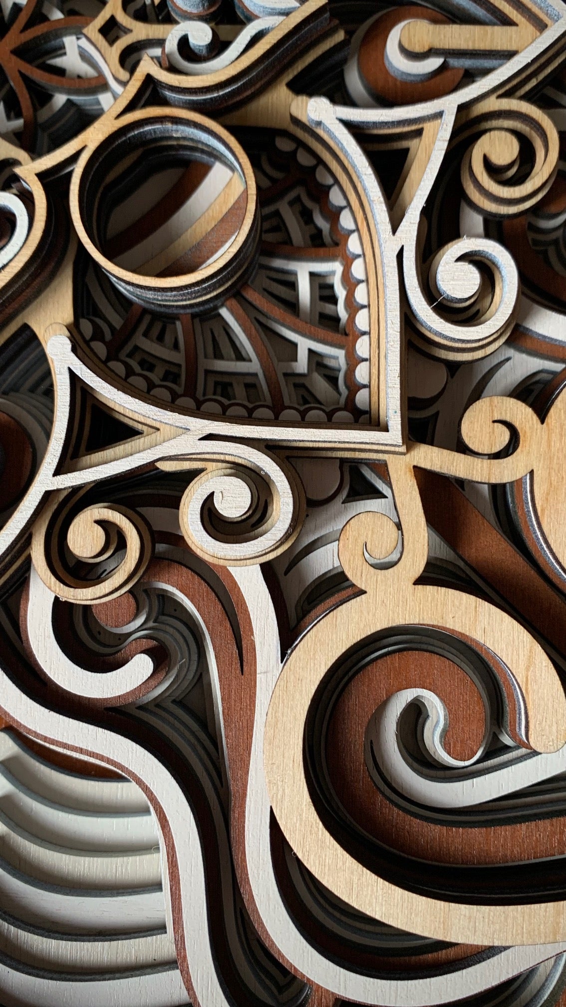 Tento obraz z laserově řezané překližky představuje nádherně propracované geometrické a ornamentální motivy, které se vrství do prostorového reliéfu. Středová mandala s jemnými detaily vytváří dojem hloubky a harmonie, zatímco kombinace přírodních odstínů dřeva – od světlé břízy po tmavší ořech – dodává dílu teplý a elegantní vzhled. Precizní zpracování a symetrická kompozice z něj činí originální umělecký kus, který spojuje moderní technologii s tradiční estetikou ruční práce.