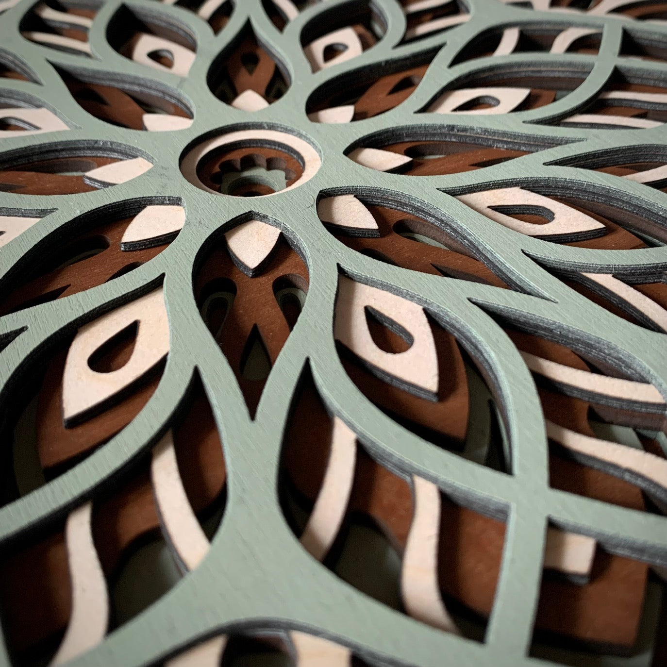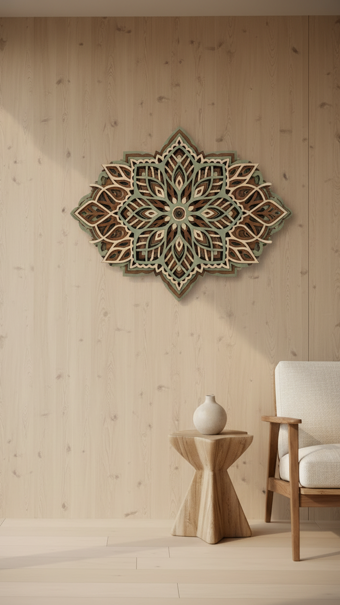 Tento precizně zpracovaný obraz z laserově řezané překližky zaujme svým harmonickým tvarem mandaly a prostorovým efektem. Vrstevnaté linie z různých odstínů dřeva vytvářejí jemnou hru světla a stínu, která dodá interiéru klid a eleganci. Každý kus je originálním spojením moderní technologie a přírodní estetiky – ideální dekorace pro domov i kancelář.