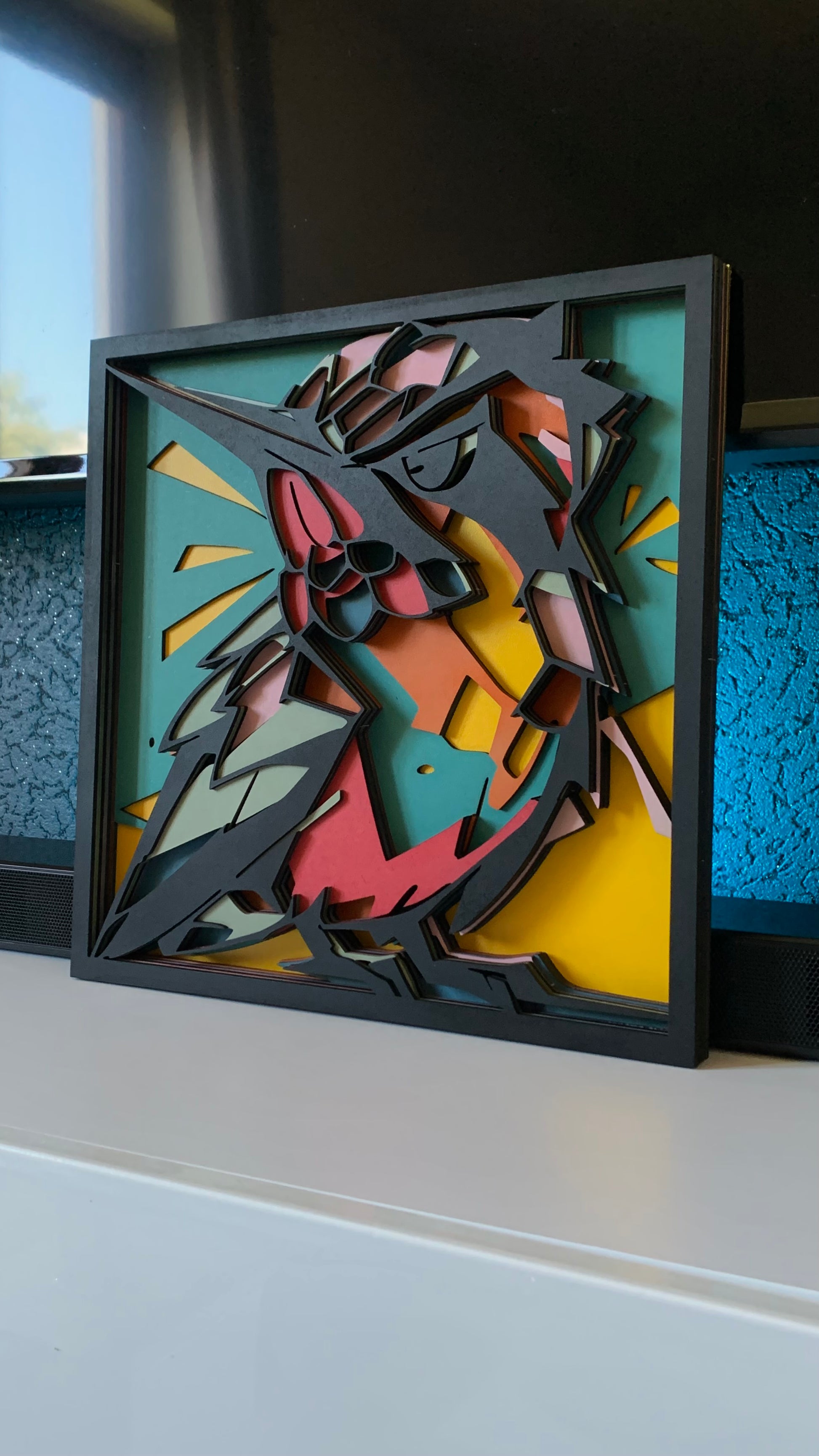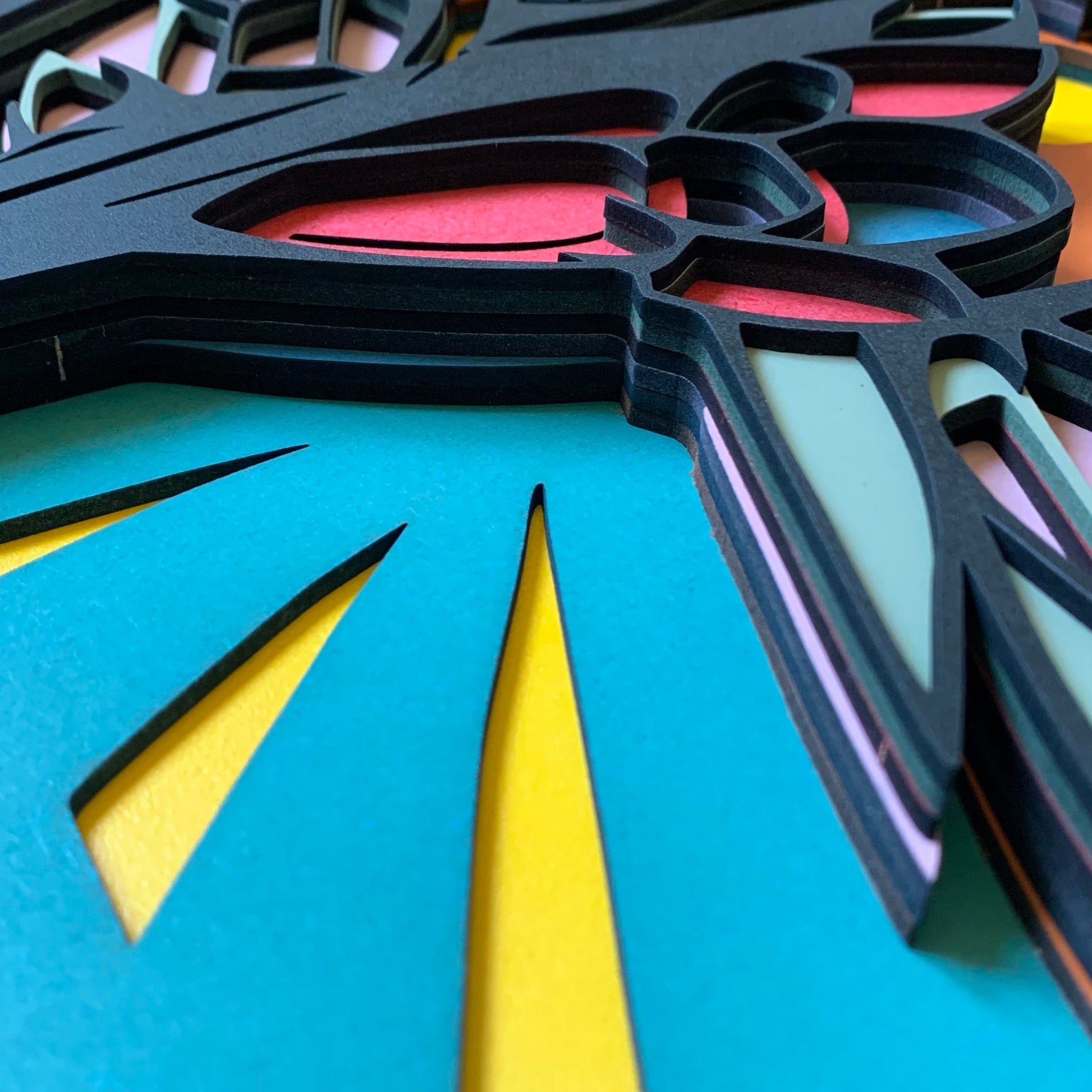 Vyrobeno z 8 dřevěných desek vrstvených na sebe. Výrobek je zalakován a nabarven.