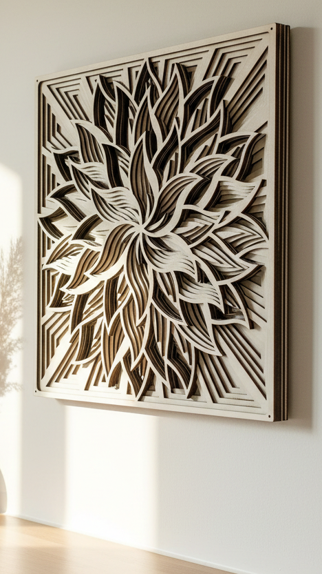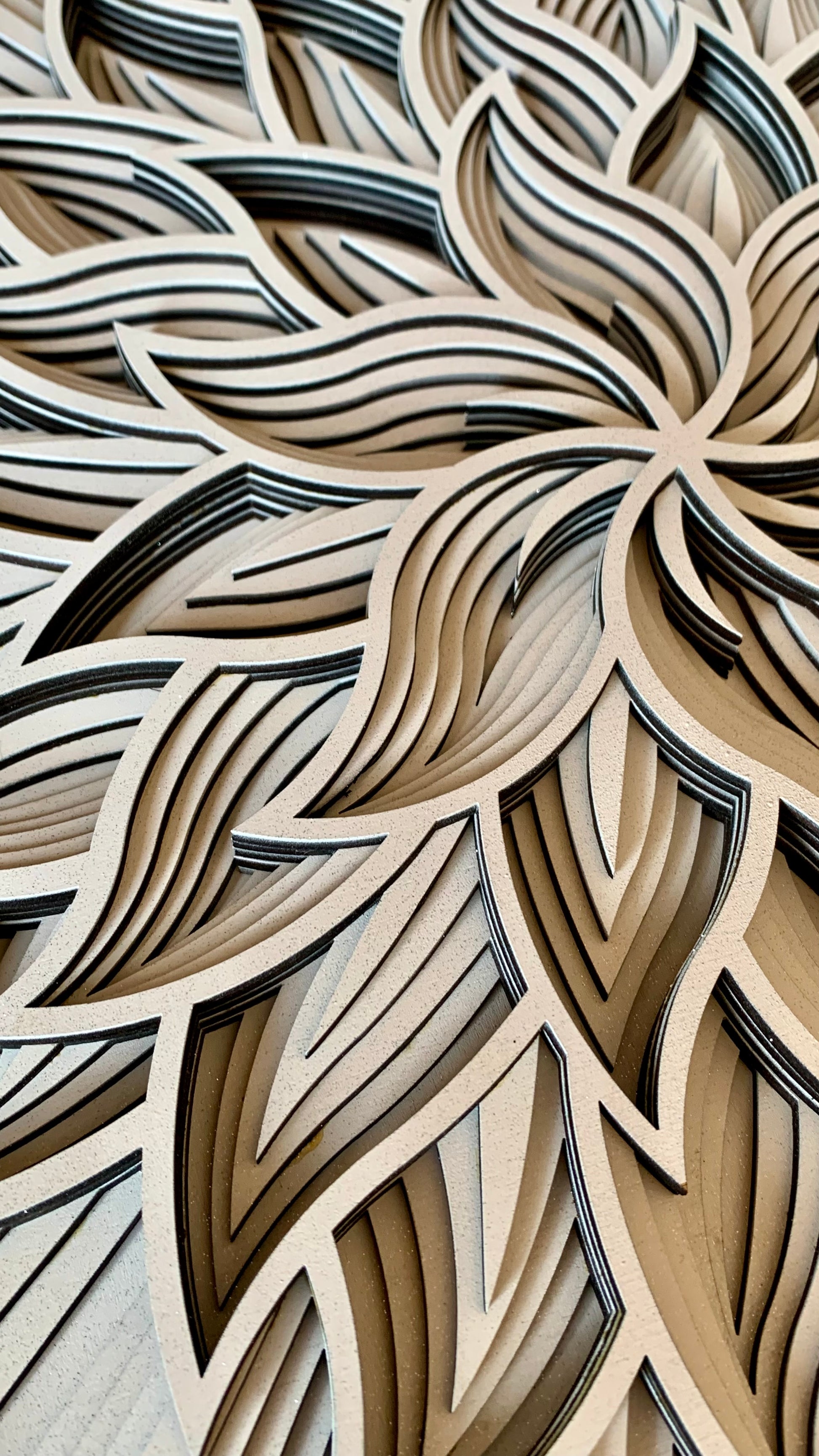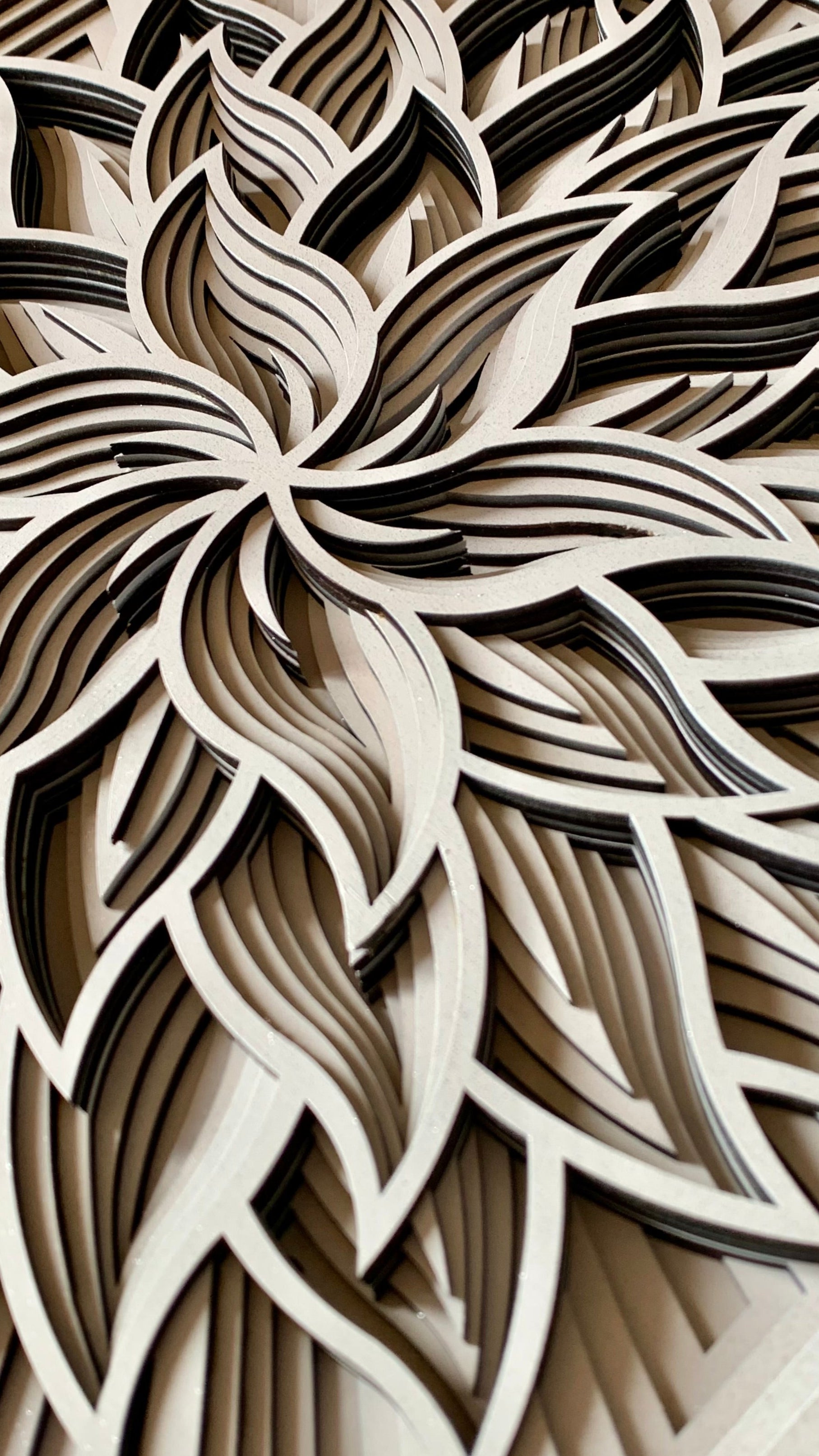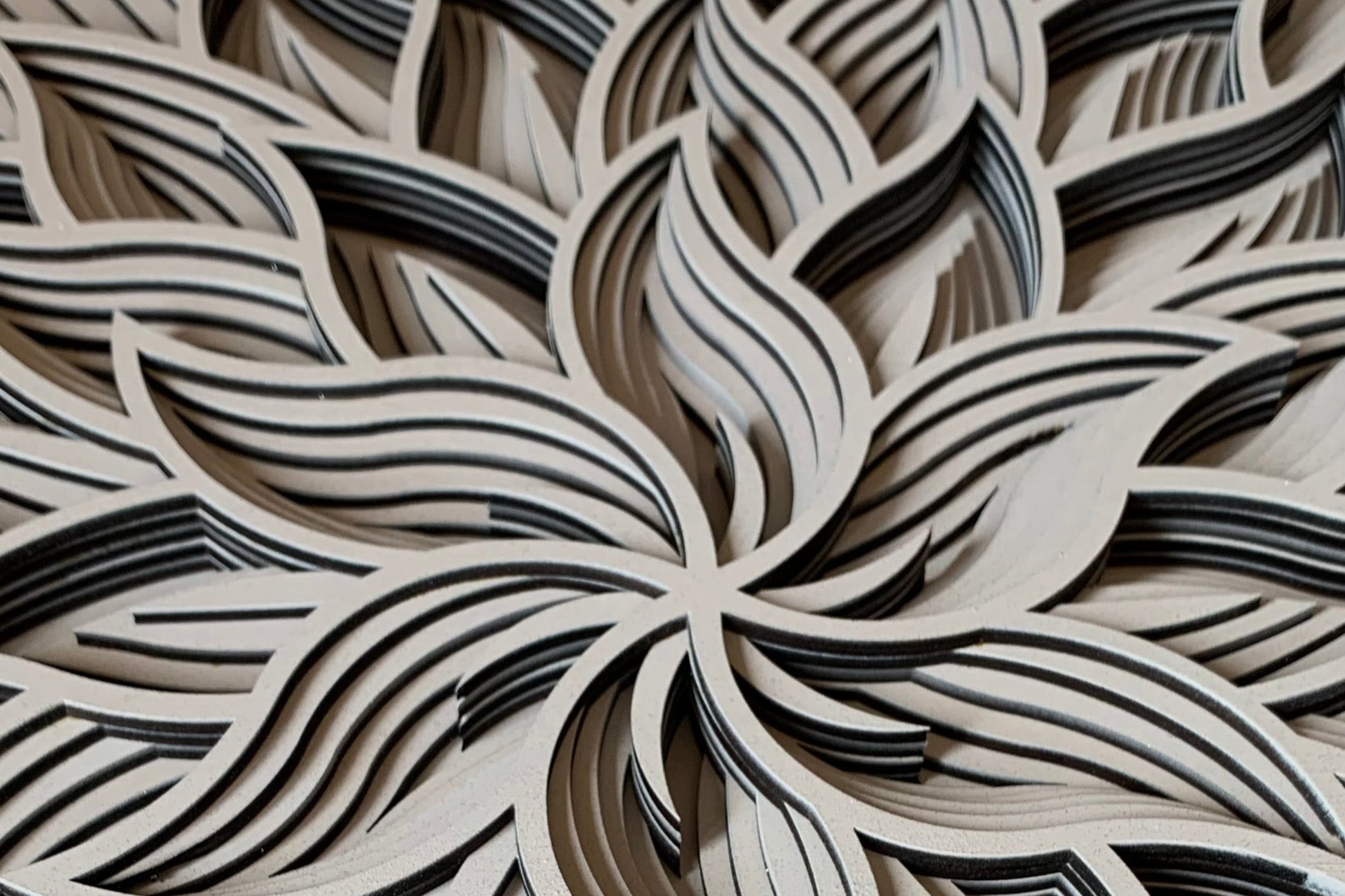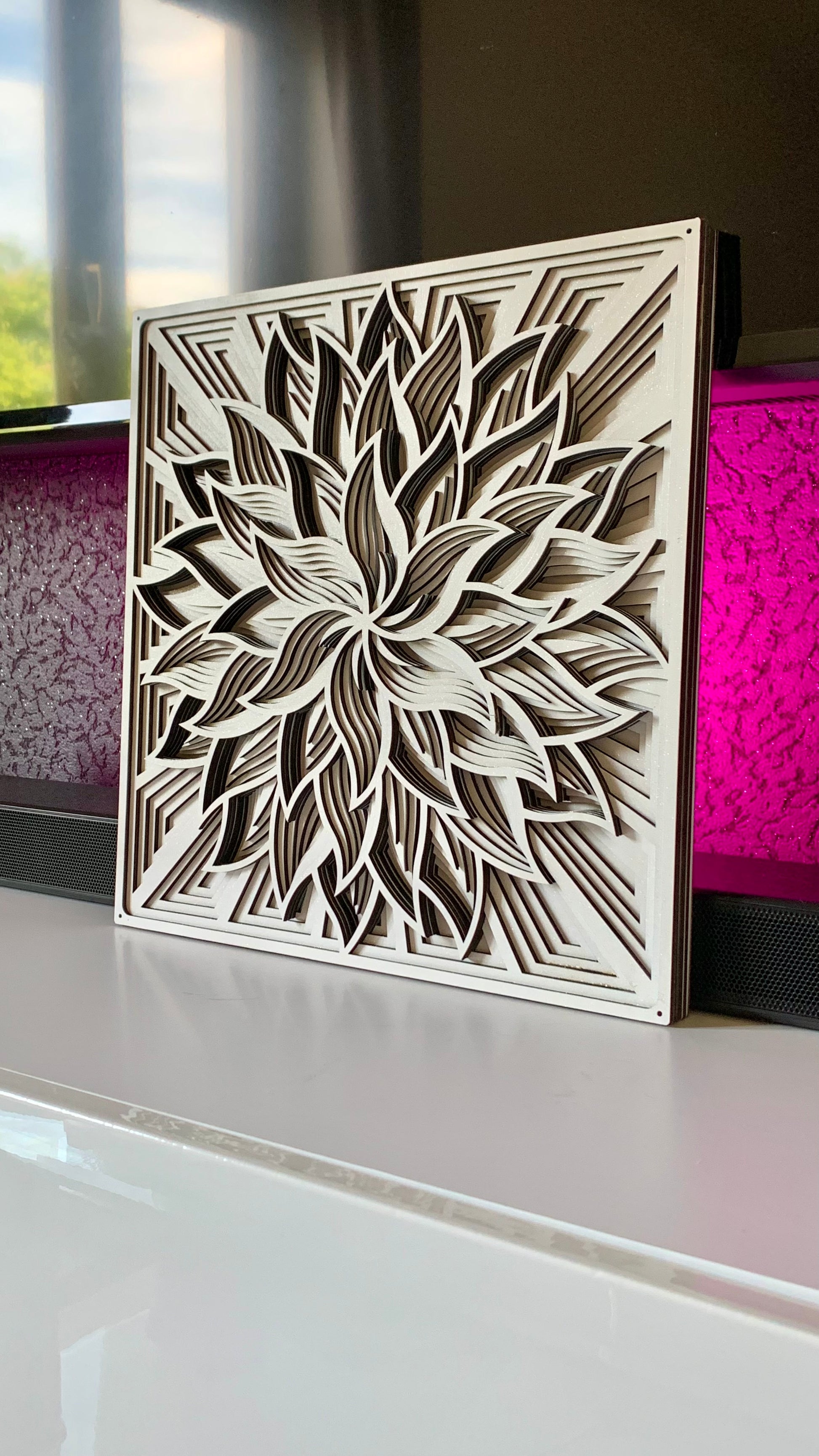 Vyrobeno ze 6 dřevěných desek vrstvených na sebe. Výrobek je zalakován a nabarven.