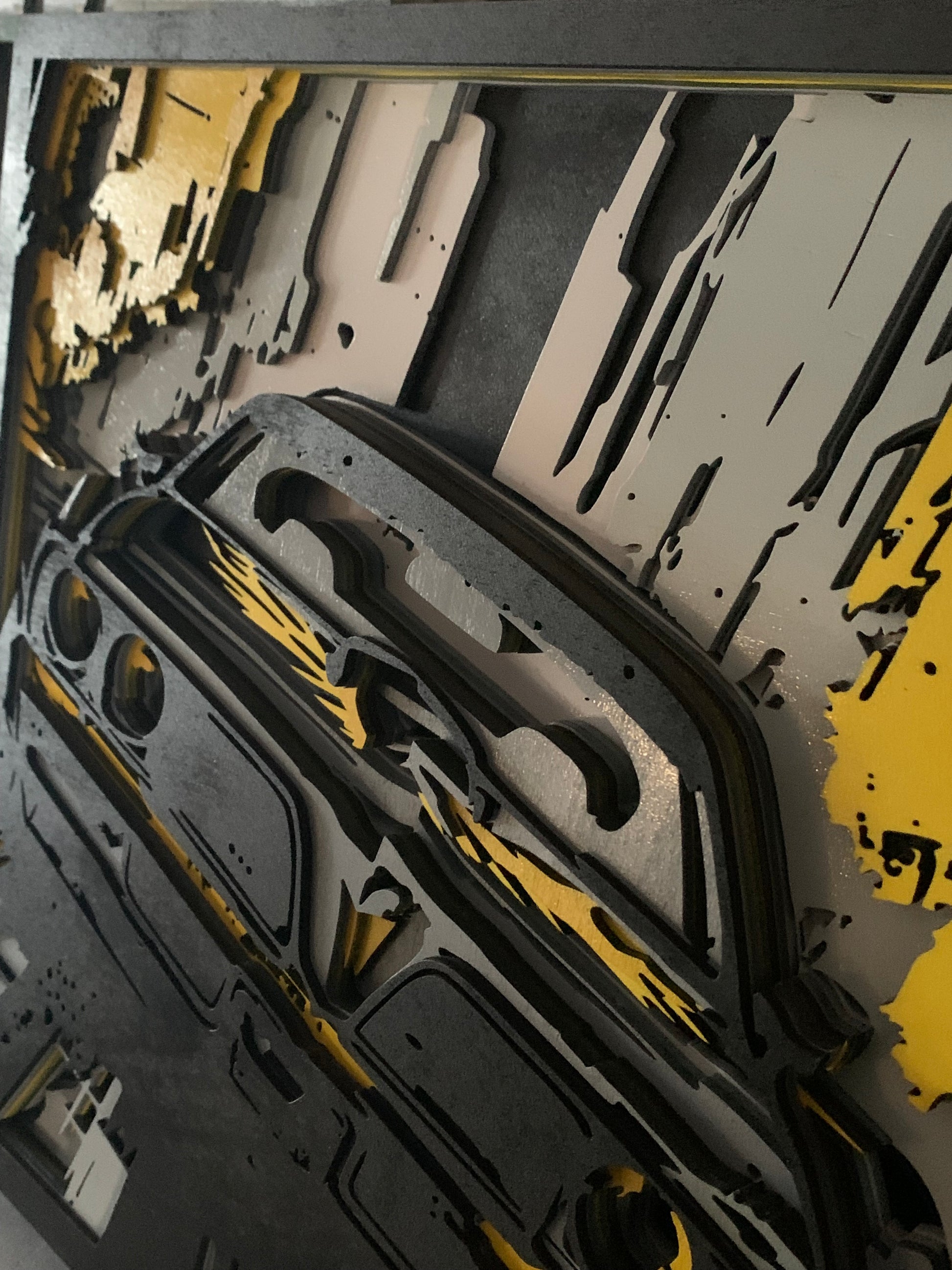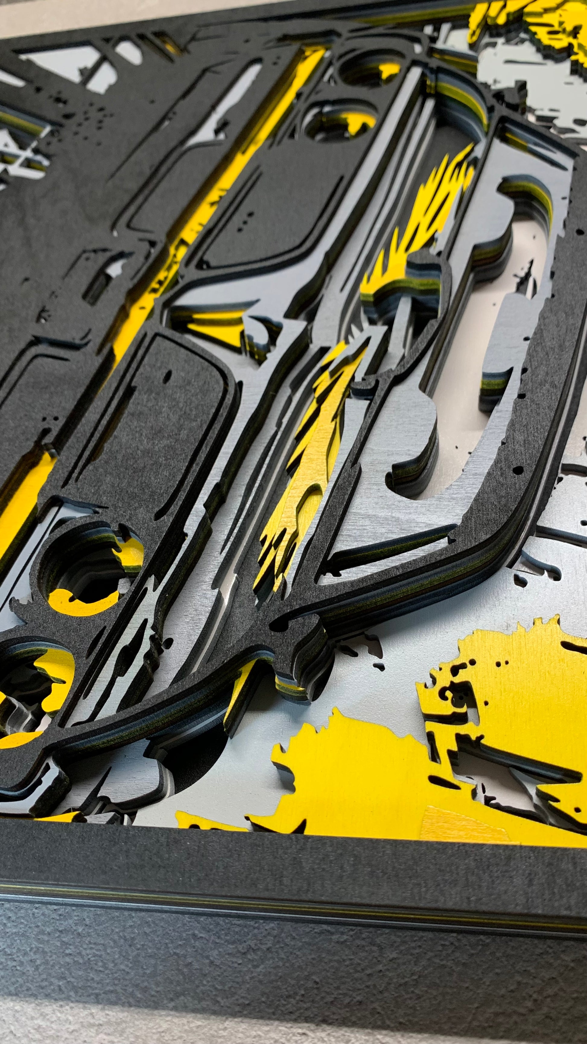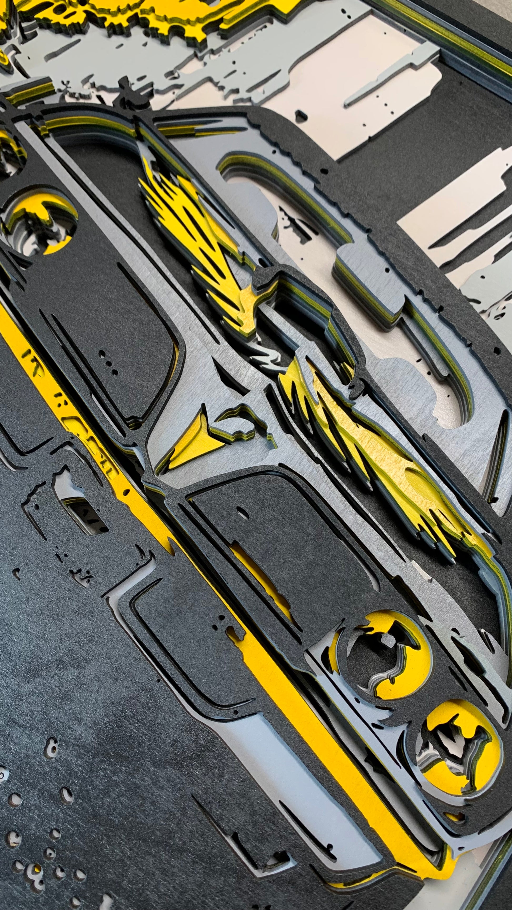 Vyrobeno z 8 dřevěných desek vrstvených na sebe. Výrobek je zalakován a nabarven.